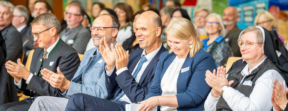 „Wir besiegeln ein neues altes Werk in gemeinsamer Trägerschaft, ein Werk, das durch Vision und Herzkraft, durch Behutsamkeit und Ausdauer, durch Fleiß und Rechenleistung, durch Unsicherheit und Hoffnung hindurch gewachsen und gereift ist: Mit 1.9.2022 wurden drei Trägerschaften in eine gemeinsame gebündelt übergeben. Die Historie kennen wir, jetzt gilt es zu feiern und zu danken“ – mit diesen Worten begrüßte Sr. Sonja Dolesch, Vorstandsvorsitzende im VfFB und Hausherrin, die rund 120 Gäste. Neben Vertreter*innen der Einrichtungen und der Orden waren viele Wegbegleiter*innen und Mitarbeiter*innen des Vereins für Franziskanische Bildung gekommen.